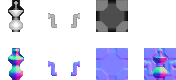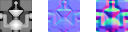 Lastly it is possible to merge normal maps in an image editing program with mostly correct results. This lets you do things like add detailed noise to a smooth normal map, or merge different shapes.